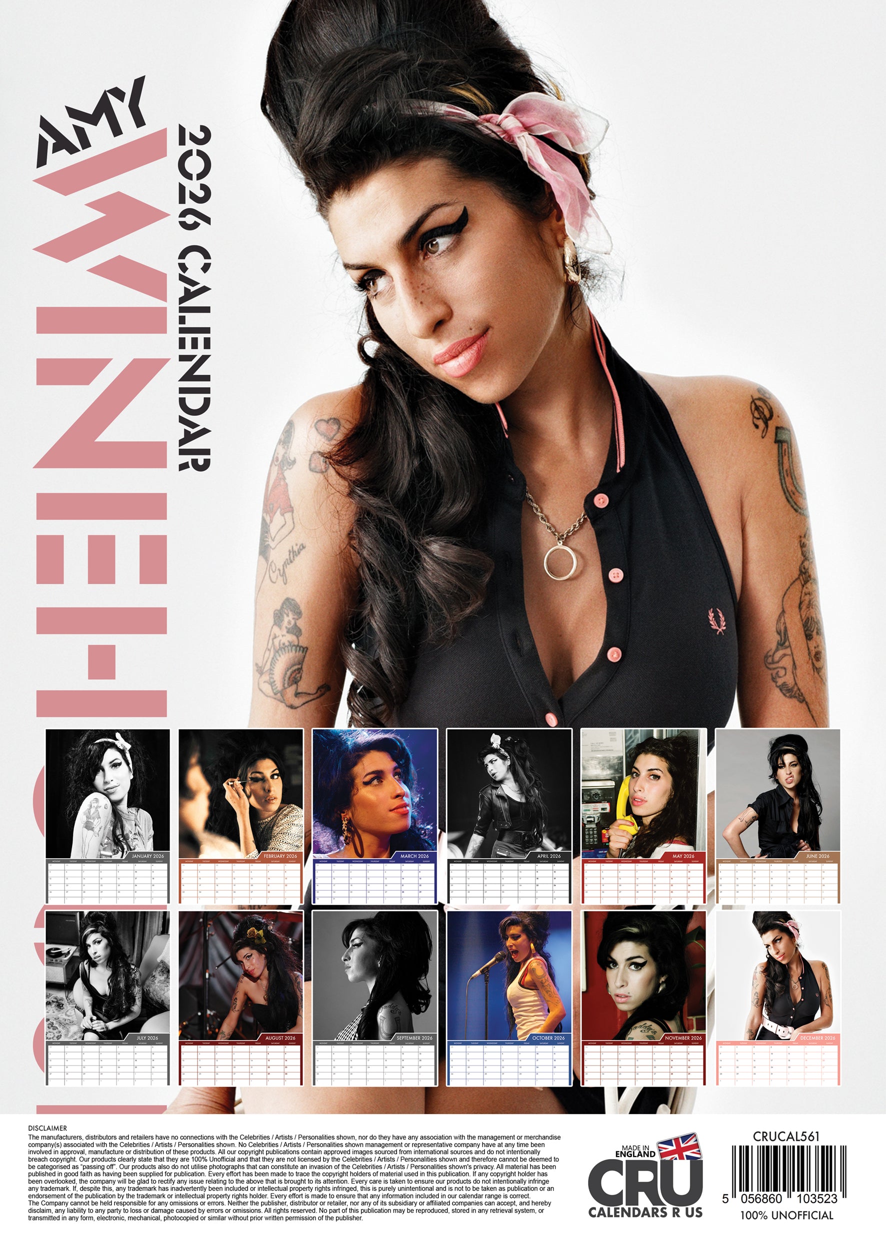 Celebrate the legendary talent of Amy Winehouse throughout 2026 with this stunning A3 calendar. Featuring iconic imagery of the jazz-soul icon, each month brings a fresh dose of her timeless style and charisma to your wall. Perfect for fans who want to keep their musical hero close at hand, this oversized format ensures every photo is displayed in all its glory. Mark your dates in style with a calendar that's as unforgettable as her voice.