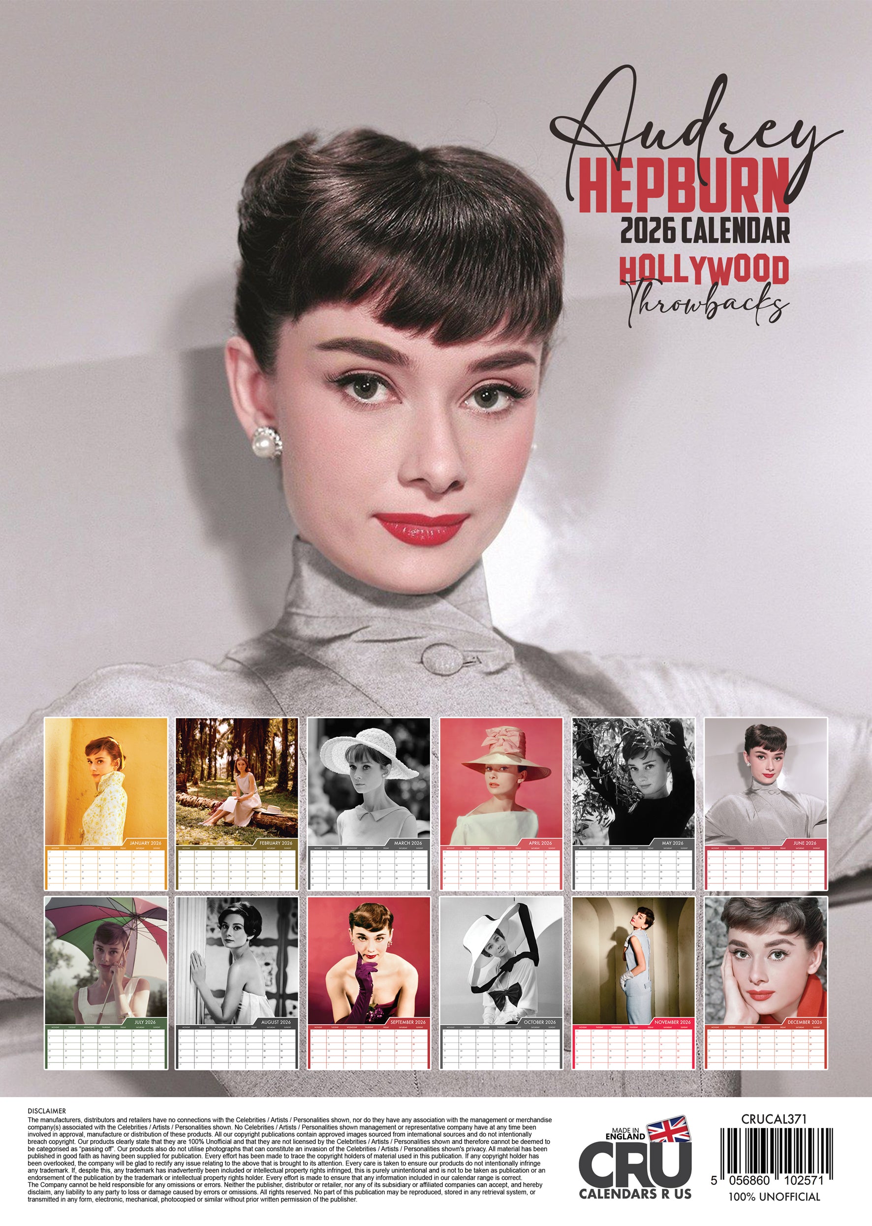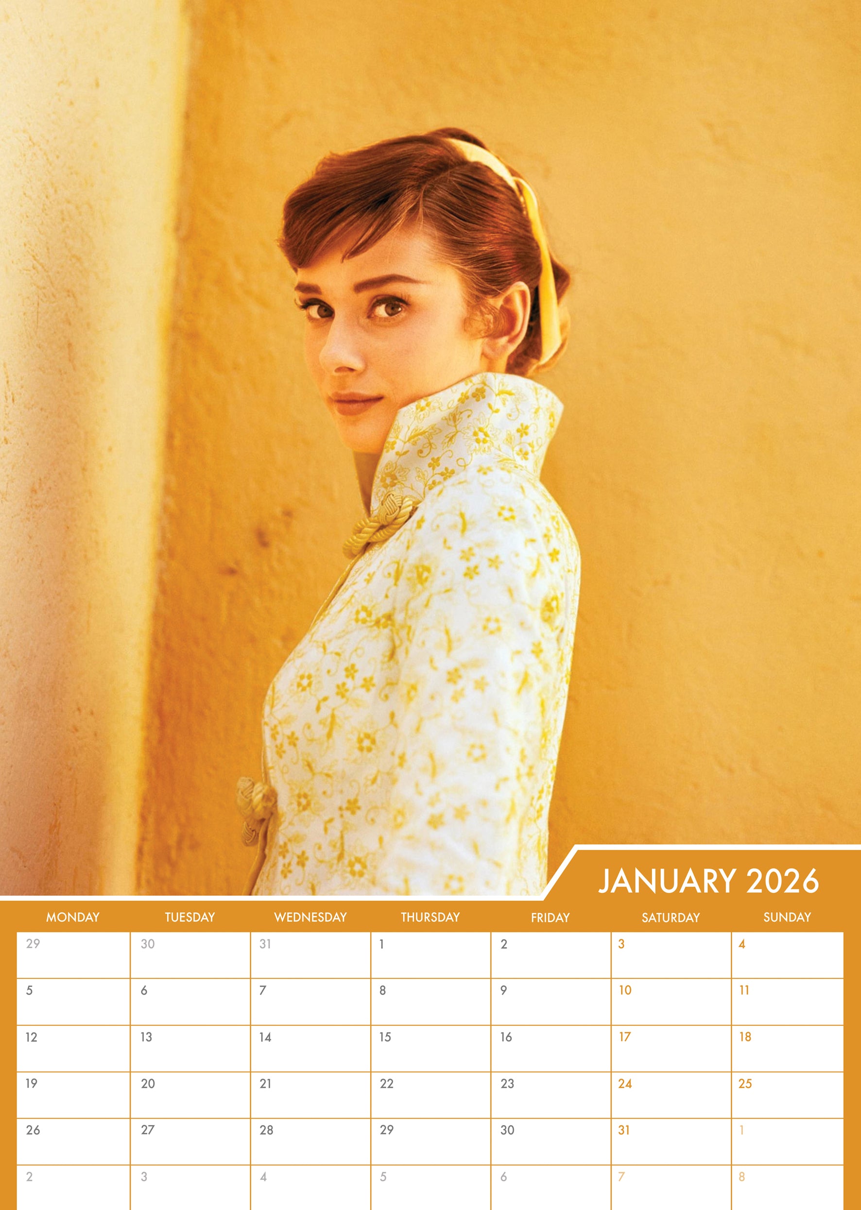 Plan ahead with style and elegance using our Audrey Hepburn 2026 A3 Calendar! Featuring iconic images of Audrey, this calendar will make your days brighter and more organised. (Plus, it's the perfect gift for any Audrey Hepburn fan!)