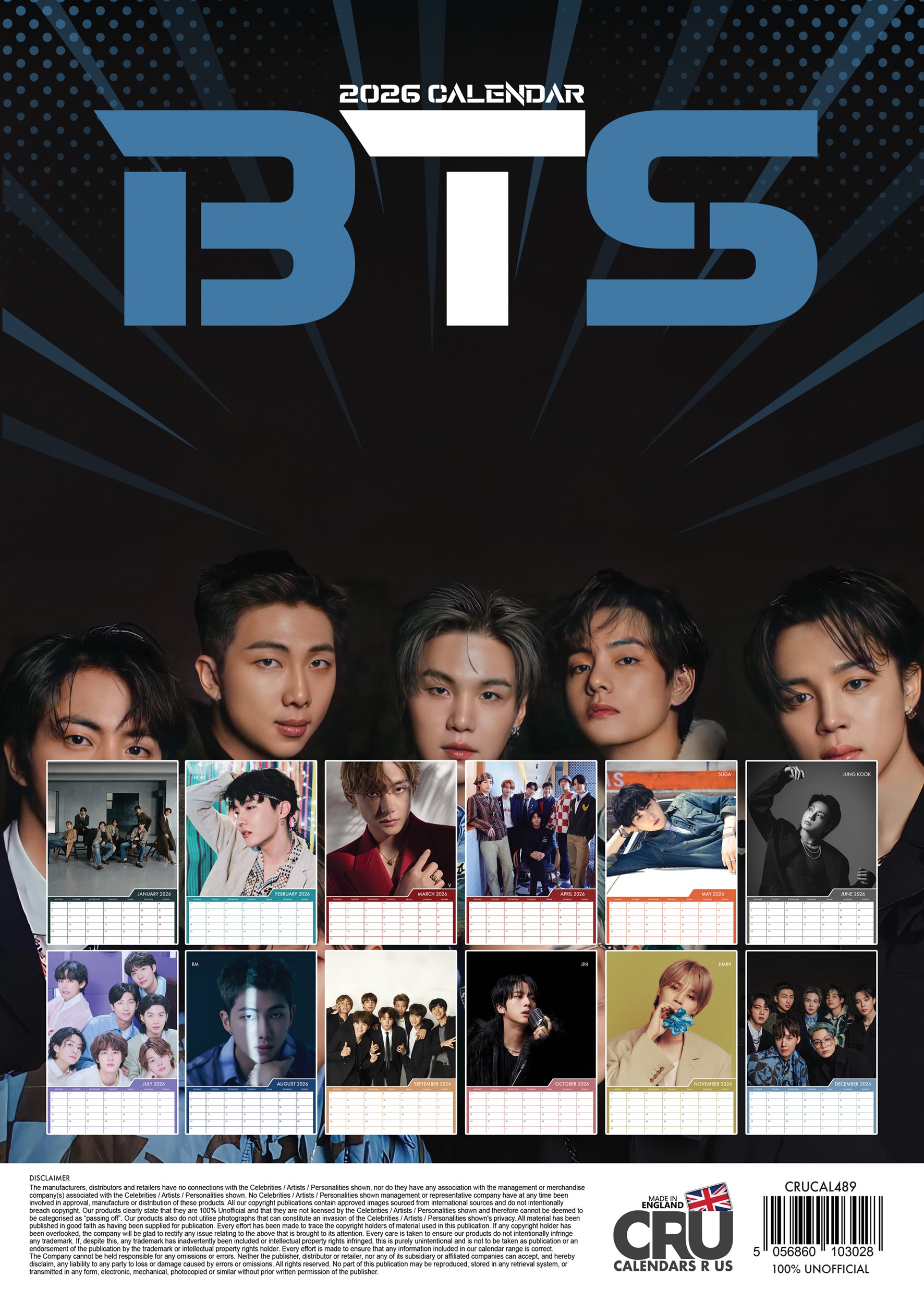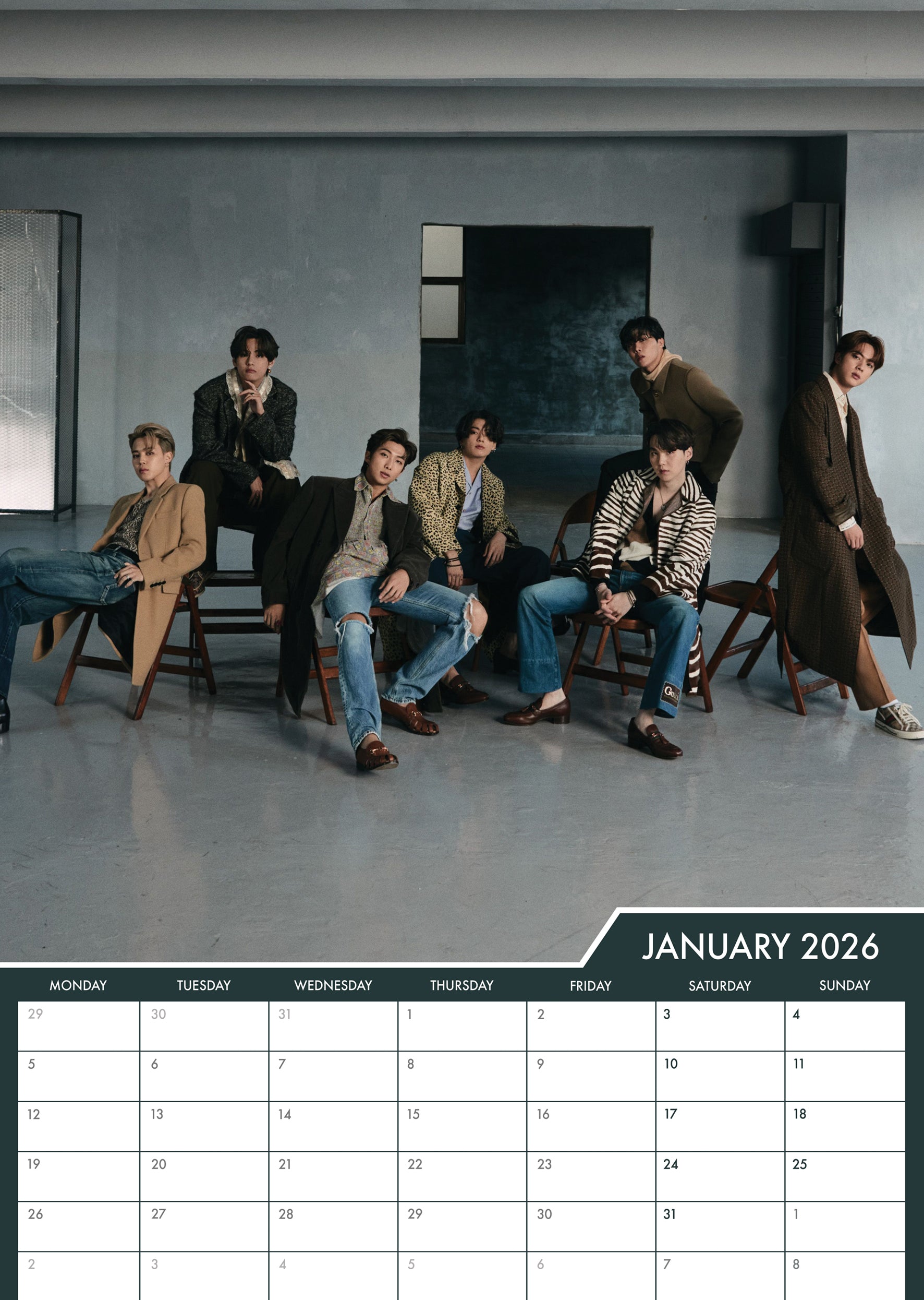 Call it a date! Let BTS be part of your everyday life with this 2026 Calendar! It's an A3-sized calendar with 12 months of the boys so you can keep them close to your hear! It's a perfect way to keep track of your schedule, and get a smile every time you look at the pics!
