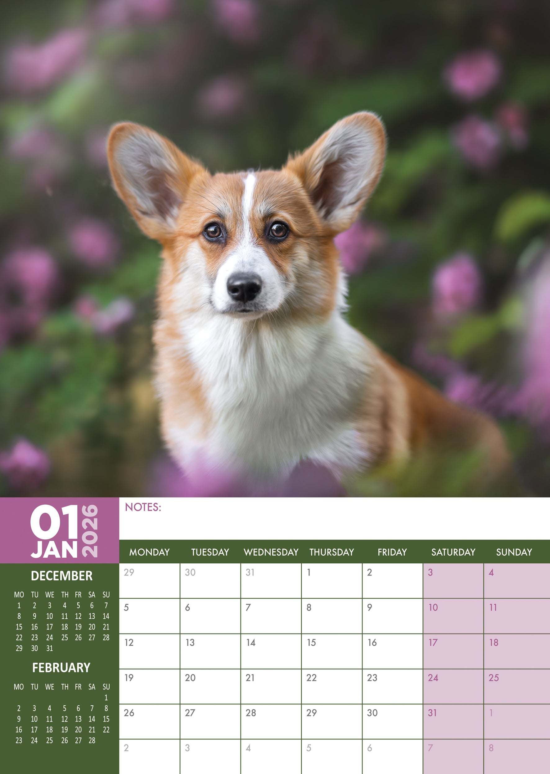 Corgi - A3 Calendar 2026
