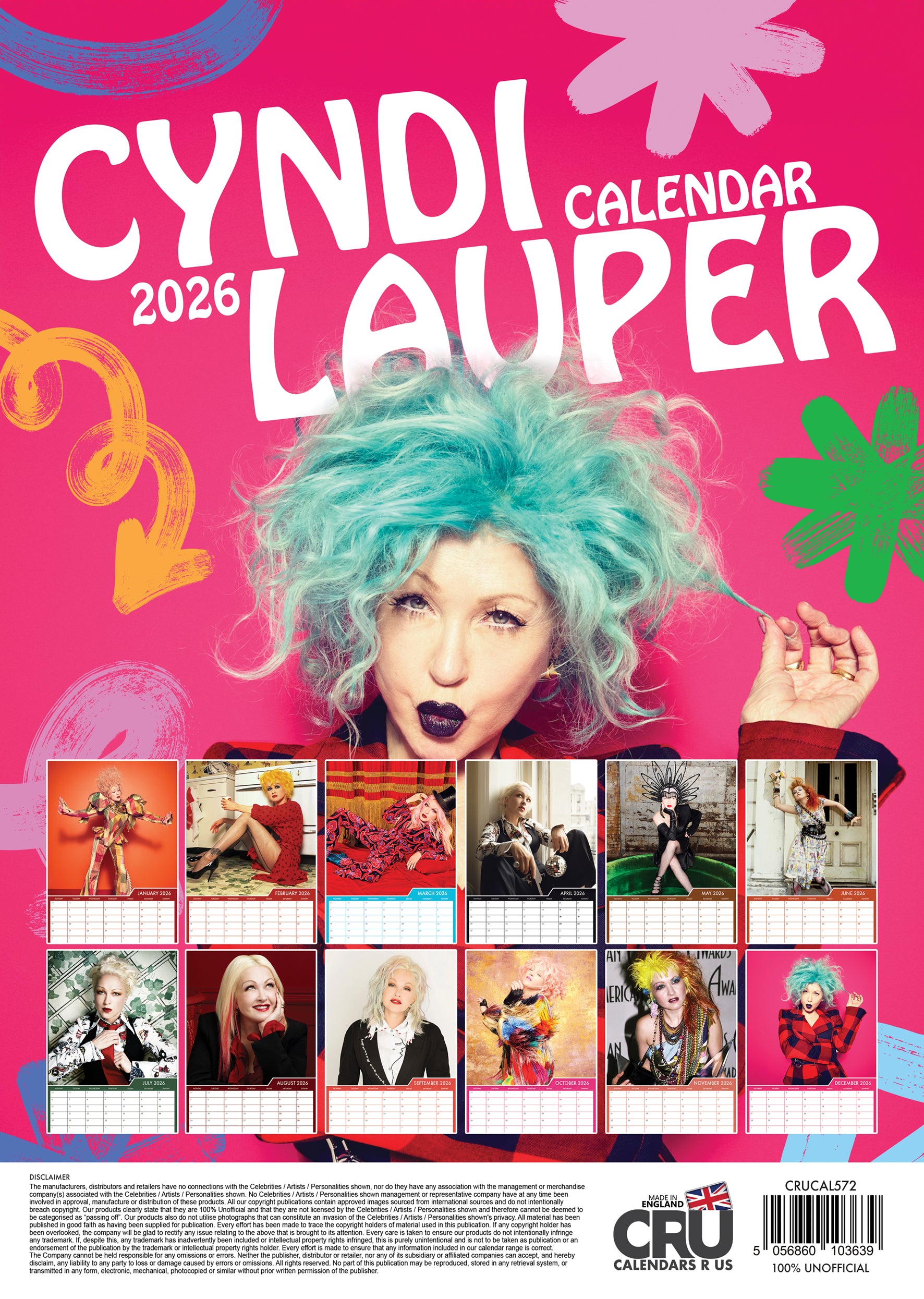 Celebrate 365 days of pure pop perfection with the Cyndi Lauper 2026 A3 Calendar! Featuring vibrant imagery of the iconic "Girls Just Want to Have Fun" legend, this oversized calendar brings colour and attitude to any wall. Each month showcases stunning photography that captures Cyndi's legendary style and charisma. Perfect for fans who want to keep their year organised in true 80s fashion. Mark your dates in style with a calendar that's as bold and unforgettable as the woman herself. A must-have for collectors and devoted admirers alike.