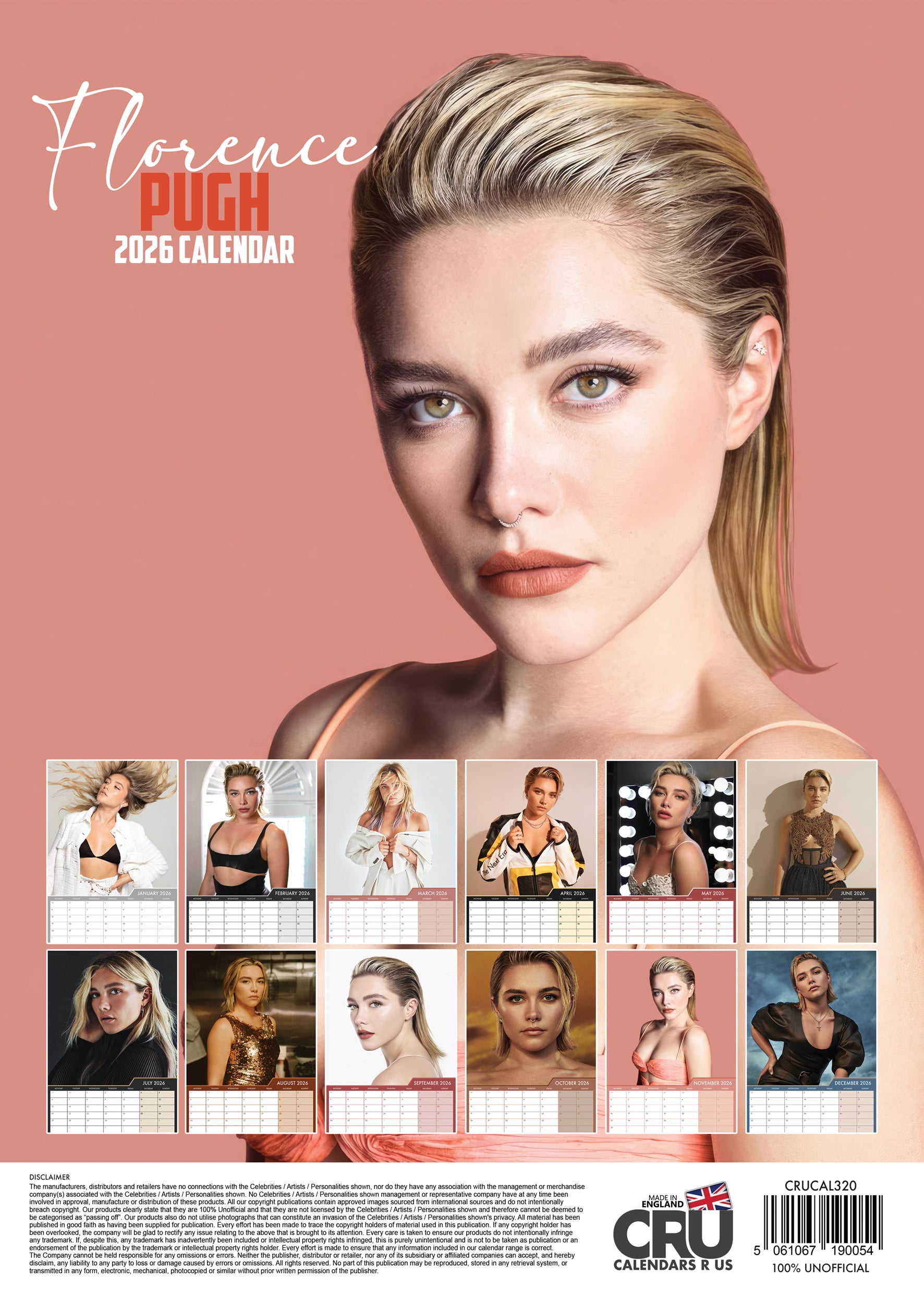 Get ready to mark your year in style with this Florence Pugh Calendar 2026! 12 months of the talented actress on an A3-sized calendar - perfect on your wall or desk! Don't miss out on this one, folks!