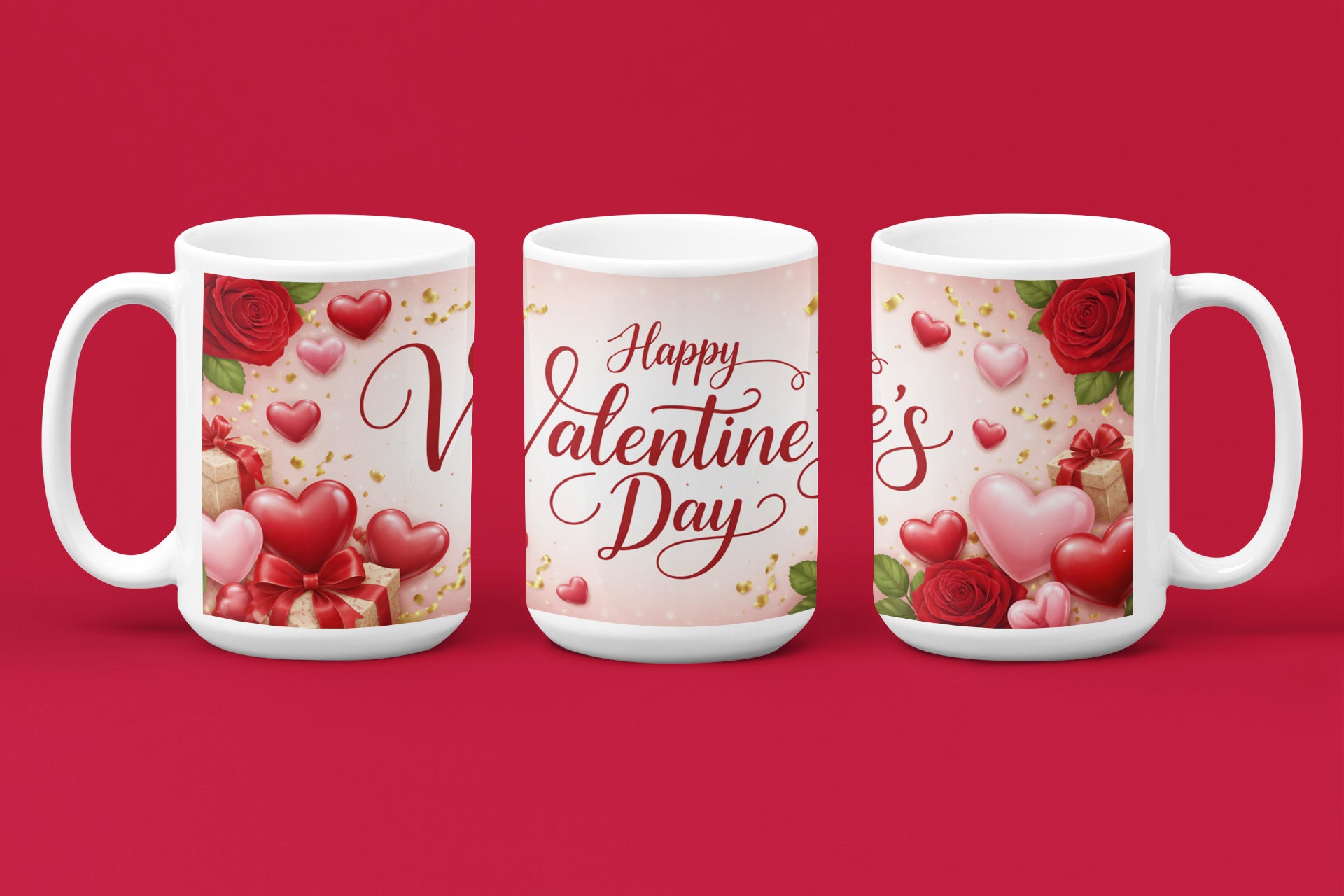 - ❤️ CLASSIC VALENTINE’S MESSAGE Features the elegant phrase “Happy Valentine’s Day” in beautiful script, surrounded by hearts, roses, and romantic accents.