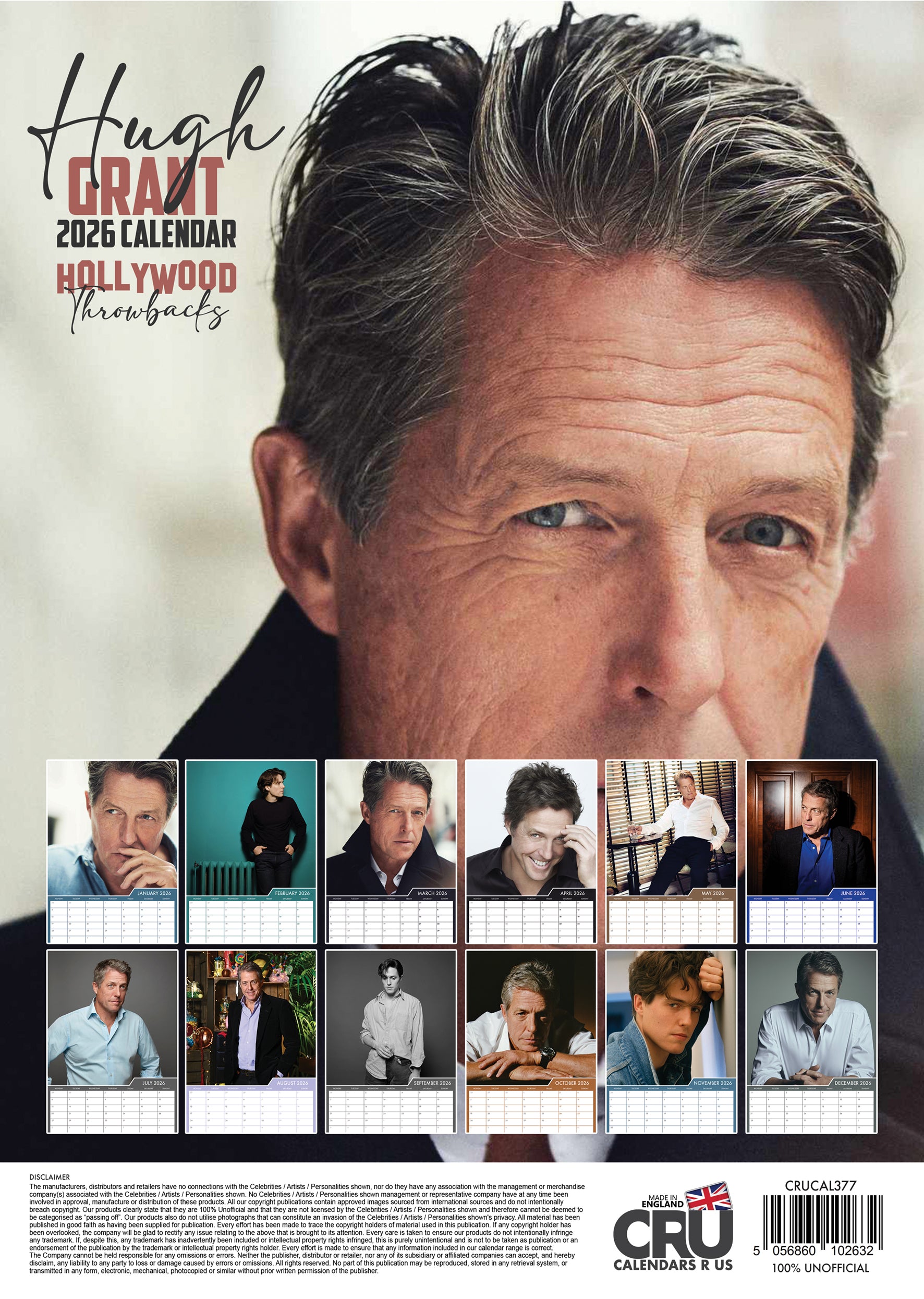 Get ready to swoon all year long with the charming Hugh Grant A3 calendar for 2026! Keep track of the days while enjoying swoon-worthy photos of Hugh Grant for each month. The perfect gift for any fan of this beloved actor. 2026 just got a whole lot dreamier.