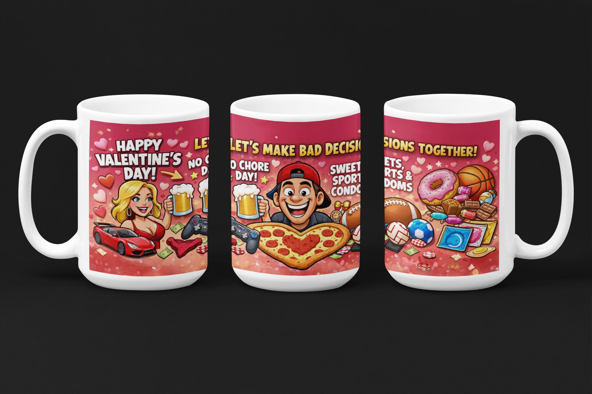 - 😂 FUNNY & FLIRTY DESIGN Features the playful message “Let’s Make Bad Decisions Together!” with bold, colourful illustrations — perfect for couples who love to laugh.
