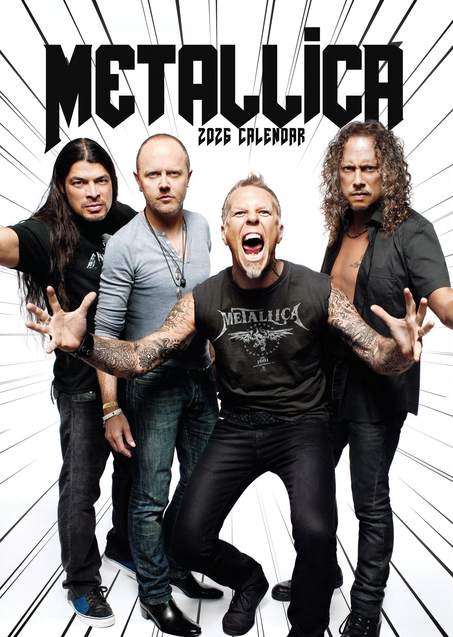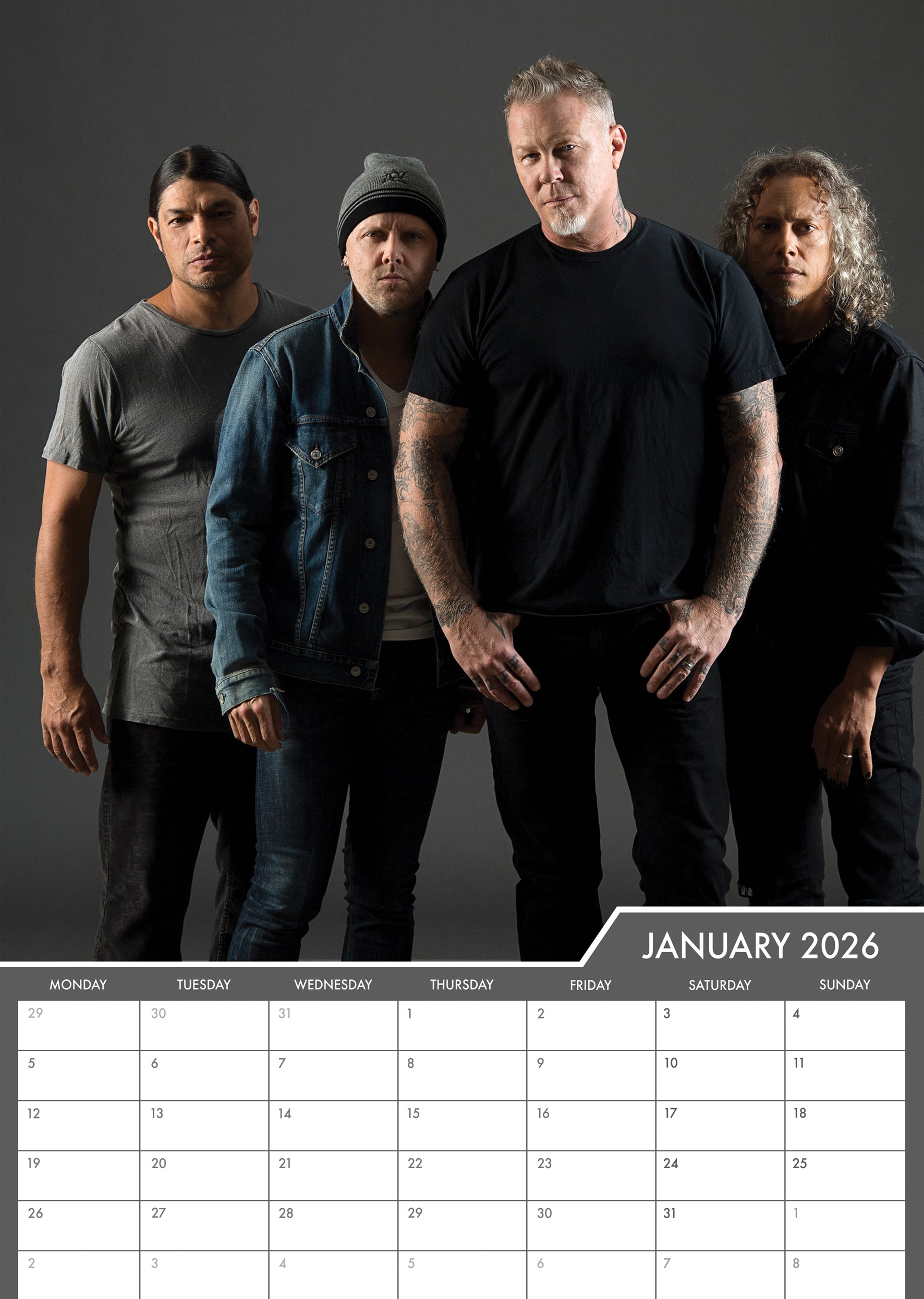 Rock your wall with the Metallica 2026 A3 Calendar! Perfect for die-hard fans, this oversized calendar features stunning imagery of the legendary metal icons throughout the year. Each month brings fresh artwork to inspire your inner metalhead while keeping you organised in style. Whether you're planning tour dates or just want to celebrate the masters of metal, this calendar delivers the perfect blend of functionality and fandom. Crank it up and make 2026 unforgettable!
