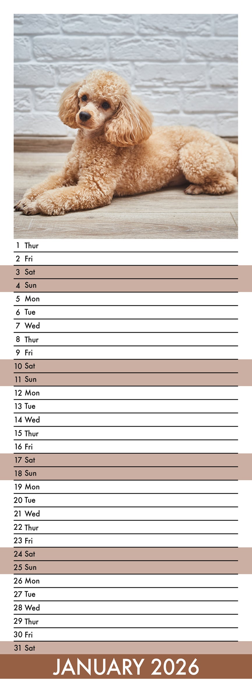 Poodle - Slim Calendar 2026