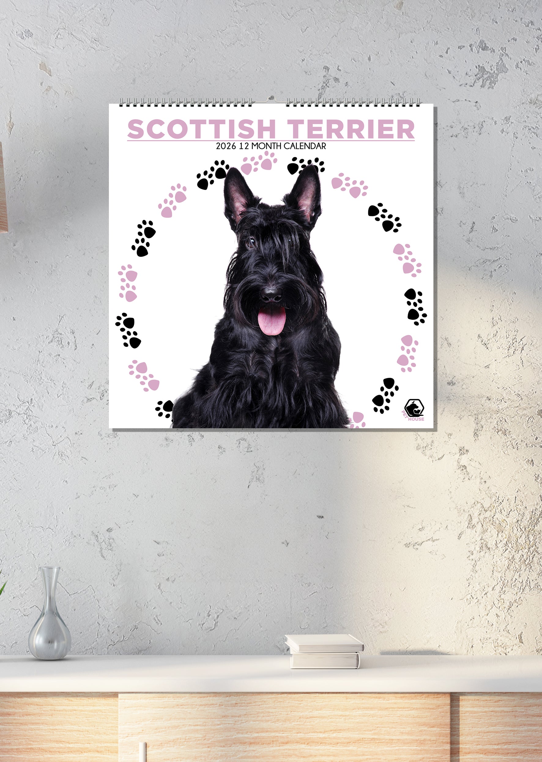 Welcome your furry friend into your home any time you have a glance at this 2026 Scottish Terrier Calendar! It's A3-sized and includes 12 months of paw-some photos of the pup. Keep it on the wall and it'll be your constant companion!